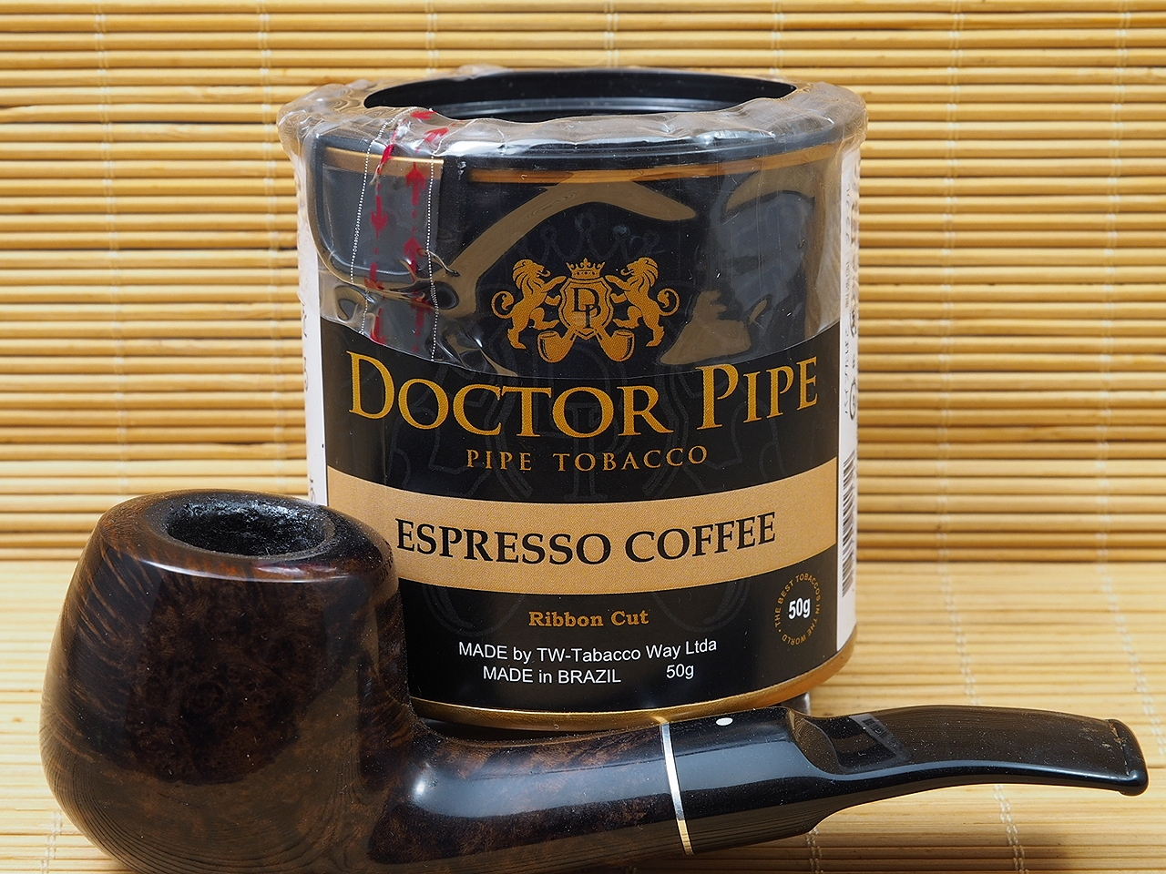 ブラジルのパイプ煙草ブランド=ドクターパイプのインプレッションを続けます。今回は「エスプレッソコーヒー」です。輸入元の解説では「深煎りの珈琲と甘みが際立つバージニア&ブラックキャベンディッシュのシンプルなブレンド。」とありますから、コーヒー着香の煙草という事ですが、コーヒー味の着香煙草は割りと珍しいので楽しみです。 では開けてみましょう。 開封時の香りは、確かにコーヒーです。ここまでモロにコーヒーな煙草の香りは初めてかも知れません。そして、そのコーヒーの香りの中に、微かな果物系の香りも感じます。良い匂いです。カットはちょっと細かいラフとリボンで、湿気はやや渇き気味です。 これを火皿内径18mmのパイプに詰めて着火しますと、コーヒーの香りが来ました。ただ、あの苦いエスプレッソと言うよりも、チョココーヒーとかコーヒー牛乳のような、甘さが先に立つような香りで、且つやはり果物系の香りも感じます。味もコーヒー牛乳に近く、苦みよりも甘味を強く感じます。う~む、これは好きな味です。 火付きと火持ちは良いです。イイ気になって強くスパスパやらなければ、イージーに吸えます。燃え進みも割りと速い方だと思います。 喫煙中盤になるとコーヒー味の中に微かな酸味も感じるようになりました。本物のコーヒーにもある酸味で、これも含めてかなり完璧なコーヒー味の煙草だと感じます。或いは、序盤に感じたフルーツ感はこの酸味に由来するのかも知れません。 喫煙終盤になると、慣れもあってかコーヒー味が少し薄くなったように感じます。それと粉ミルクのような粉っぽい甘さも出て来ました。ただ、それも悪い感じはなく、これならこれで美味しく吸えています。 という事で喫煙終了。後味は薄まったコーヒー牛乳で、残り香もコーヒー牛乳でした。 全体的に見て、確かにコーヒーをしっかり感じる見事な着香煙草だったと思います。ただし、見事な着香だっただけに、煙草っぽさという意味では物足りなく感じる人もいらっしゃるかも知れません。 他のブランドにもコーヒー着香の煙草は幾つかあったかと思いますが、ここまで強烈にコーヒーを感じる銘柄はなかったように思います。パイプ煙草にコーヒーを合わせる方も多いかと思いますが、流石にここまでコーヒーな着香煙草に本物のコーヒーを合わせるのは「なし」なんではないかと思ってしまいます。それくらい見事なコーヒー着香でした。[見事な煙草ブログは此方 Click!]