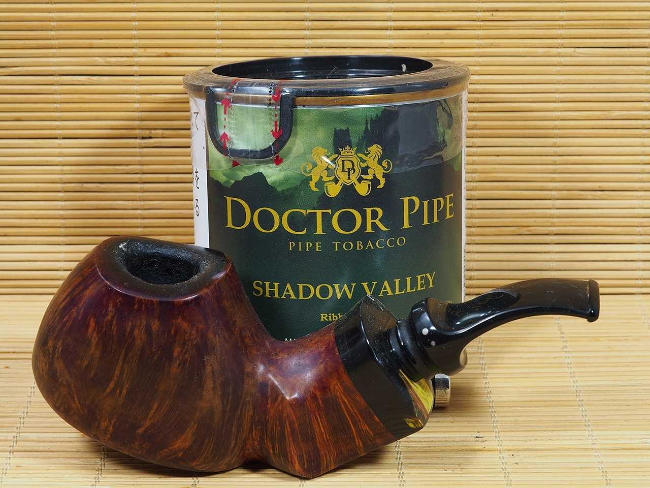 今回吸ってみるドクターパイプの煙草は「シャドウバレー」です。輸入元の説明では、ラタキア入りのウィスキー系着香煙草なのだそうです。私はウィスキー系着香煙草もラタキア物も吸った経験がありますが、それらを合わせたウィスキー系着香ラタキア物というのは初めてです。いったいどんな味なのでしょう。早速開けてみます。 開封時の香りは、確かにウィスキー系着香煙草のそれです。ボルクムリーフとかの匂いに近いです。で、その中にラタキアの薫香が・・・、あるのか無いのか良く分からない程度混ざっている感じです。カットはリボンで、湿気は普通でしょうか。 これを火皿内径20mmのパイプに詰めて着火しますと、ウィスキーっぽい香りと微妙な甘さを伴った紅茶系の味が来ました。ウィスキー系の煙草で馴染みのある味わいです。ラタキアの薫香は、強火力になる着火時に微妙に出るくらいで、しかも同社のラタキア特有の食べ物の薫製に近い匂いなので、殆ど「臭い」感じになりません。他方、味の中にはラタキア的な旨味が少しあって、ラタキアが全くの行方不明になっている訳ではありません。 う~む、こういう完全に裏方に回っているラタキアの使い方は、私の好きなタイプです。 火付きと火持ちは普通に良いと思います。燃え過ぎるような感じもありませんから、喫煙テクニック的にはイージーな方だと思います。 喫煙中盤では喫味の変化はありません。火力を少し強くすると、相応の辛みが出ますが、まぁ、許容範囲です。また、ラタキアの臭みも出て来ず、その旨味だけが味わいに微妙に加わっている様子も序盤と同じです。 喫煙終盤もそのままの喫味で続きます。う~ん、バーレー系の渋さが少し出て来たでしょうか。この段階ではパイプ本体も熱を持ち、全体的に燃焼温度が上がりがちになるはずなのですが、高温で出やすいラタキア臭が殆ど出て来ません。これほどラタキアが隠し味に徹しているブレンドも珍しいと思います。 という事で喫煙終了。後味はやや渋めの紅茶系で、残り香は微かにラタキア感とウィスキー感のある焚火系でした。 全体的に見て、完全に裏方に徹しているラタキアが適度な旨味を加えている、上手く出来たウィスキー系煙草だったと思います。 元々臭さを感じさせ難い同ブランドのラタキアですが、これ程までに裏方に徹していると、ラタキアのイメージそのものまで覆されるような気持になります。或いは、こういうラタキアだからこそ、裏方に回っても旨味の効果が生かせるのかも知れません。 これなら人前に出る前に吸っても、不評を買い難いのではないでしょうか。それでいて、ラタキアの旨味は生きているのですから感心します。[生きている煙草ブログは此方 Click!]