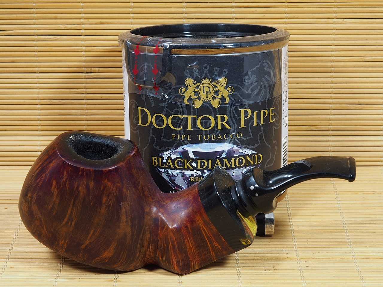 ドクターパイプの煙草を続けます。今回は「ブラックダイヤモンド」です。輸入元の解説では「主張しすぎないラタキア」とされていますが、ここまで吸って来た同ブランドのラタキア物は、確かにラタキアではあるものの、今までに経験したどのラタキアよりも臭みが少なく、非常に吸いやすい物でした。その上で「主張しすぎない」となると、かなり癖がなさそうに聞こえます。どんな煙草なのでしょう。早速開けてみます。 開封時の香りは、・・・いや、これは「主張しすぎない」とは言えないと思うくらいのラタキア臭です。とは言え、同ブランドの他のラタキア物と同様に、その薫香は食べ物の薫製とか、魚の干物とかに近く、余り臭いという感じではなく、むしろちょっと美味しそうな匂いです。カットはリボンで、湿気は普通でしょうか。 これを火皿内径19mmのパイプに詰めて着火しますと、角の取れた鰹出汁系のコクと旨味が来ました。甘味は少なく、完全に旨味で吸わせる味です。また香りも微妙な臭みはあるものの、殆ど食べ物の薫製のような感じで、余り抵抗感がありません。私が良く通る道沿いに食肉の薫製工場があるのですが、そこから漂って来る匂いに良く似ているような気がします。 火付きは普通です。燃え難くもなく、逆に燃え過ぎる感じもないのですが、火持ちは意外に良くなく、立ち消えは割りと多い方かも知れません。 喫煙中盤で旨味で吸わせる喫味は殆ど変化ないのですが、微妙に刺激が出て来たでしょうか。少なくとも「角の取れた」味ではなくなりました。ブレンドされているブラックキャベンディッシュのベースとなっているであろうバーレー葉によるものと思われますが、或いは少し燃焼温度を高くしてしまっているかも知れません。また匂いも、普通のラタキアっぽい部分が出て来ました。 そこから喫煙終盤に向かっては喫味の変化はありませんでした。火力を落としてチビチビ吸えば微妙な刺激もほぼなくなりましたし、コクと旨味で美味しく吸えました。 という事で喫煙終了。後味はコクと旨味、残り香は軽い薫香でした。 全体的に見て、一般的なラタキア物としては「主張しすぎないラタキア」と言えますが、このブランドで使われているラタキアの特徴が良く出ているという意味では、割りとガッツリとしたラタキア物だったと思います。 やはり、このブランドで使われているラタキアは、他の一般的なラタキアとはちょっと違う感じがします。その産地が何処かという話は別として、臭みによる抵抗感を最小限にして楽しめる良質なラタキア物だと思います。[良質な煙草ブログは此方 Click!]
