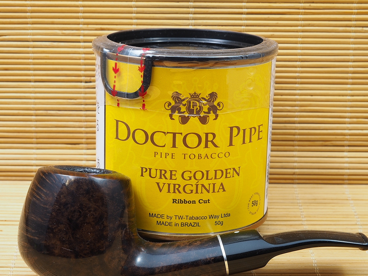 今回、ブラジルのパイプ煙草ブランド=ドクターパイプの五つ目に吸うのは「ピュアゴールデンバージニア」です。同ブランドには「ピュアゴールデンバージニア」という名前の煙草が二つあって、一つは今回のリボンカット版で、もう一つはフレイク版というのがあり、どちらもブラジリアン・フルキュアードバージニアを使っているとの事。果たして、どんな煙草なのでしょう。 まずはリボンカット版から吸ってみます。 開封時の香りは、ちょっと酸っぱい匂いを伴った枯草系です。非着香バージニア・ストレートの煙草でお馴染みの匂いです。カットはリボンで、割りと乾燥した手触りです。 これを火皿内径20mmのパイプに詰めて着火しますと、紅茶系の味と焚火系の香りが来ました。比較的浅めの熟成感ですが、慣れ親しんだバージニア・ストレートの味わいです。甘さ、コク、旨味は中庸で、非常にベーシックなパイプ煙草の喫味だと感じます。 火付きと火持ちは普通です。乾いた感触だったので、もっと燃えるかと思っていたのですが、固めに詰めたためか、そこまでバンバンとは燃えません。普通にイージーに吸えます。 喫煙中盤も喫味の変化はありません。非常にスタンダードなバージニア・ストレートの味です。糖度はそんなに高くないようで、糖度の高いバージニアでありがちなアルカリの刺激も強くはありません。非常にスムーズに淡々と吸えます。 喫煙終盤も同じ喫味です。非常にスムーズで中庸なバージニア・ストレートの喫味です。常喫や「ながら」喫煙に適していて、これさえあれば他に必要がないと言う方も居そうです。ま、逆に、それだからこそ強烈な個性の煙草も偶には吸いたくなるものですが。(笑) という事で喫煙終了。後味は紅茶系で、残り香は焚火系でした。 全体的に見て、非常にスムーズで中庸、且つとてもスタンダードなバージニア・ストレートだったと思います。 こういう煙草ですと、輸入元の解説にある通り、ブレンディング用としても使えそうですし、欲しい時に何時でも手に入れられるほど広く普及して欲しいと感じます。良い煙草です。[良い煙草ブログは此方 Click!]