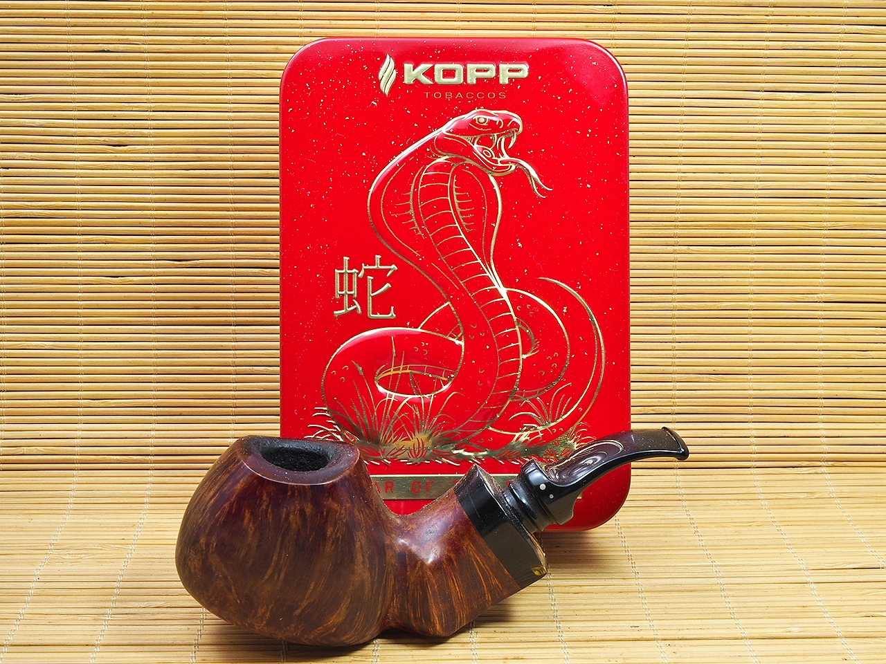 今回はラットレーの限定100g缶「イヤー オブ ザ スネーク」を吸います。今年=巳年の限定物という事でこの名前なのでしょうが、一般的なイヤー煙草と異なり、干支のある東アジア、特に中国を強く意識した煙草という事になろうかと思います。 で、缶に同梱された説明書きによると、着香は「金柑、オレンジ、マンゴー」で、葉組は「ブラックキャベンディッシュ、バージニア、バーレー」なのだそうです。柑橘系をメインとした果物系着香煙草だという事です。因みに製造はコップ社です。 それでは開けてみましょう。 開封時の香りは、ちょっとキツめの柑橘系です。「金柑」着香というのが頷けます。そこに、マンゴーによる円やかな果物系の香りが微妙に混ざっていて、キツ過ぎない感じに収まっています。カットはリボンとラフで、湿気は普通だと思います。 これを火皿内径22mmのパイプに詰めて着火しますと、柑橘がメインにある果物系の香りが来ました。開封時の香りと大体同じです。味の方は、やはり柑橘メインの果物系で、酸味が前にあり、甘味は控え目です。ふむふむ、柑橘系は個人的に最も好きな着香なので、この煙草は私にとって随分と好ましい物となっています。 火付きと火持ちは普通だと思います。テクニック的にはイージーな煙草で、何の気遣いもなくスースー吸えます。 喫煙中盤で舌への刺激が少し出て来ました。バーレーがベースであろうブラックキャベンディッシュとは別にバーレーがブレンドされているそうですから、バーレー由来の刺激が出て来るのは当然です。その刺激以外の喫味の部分に関しては、序盤とほぼ変わっていないと思います。柑橘系の味わいです。 喫煙終盤で着香分が薄れて来た感じがあり、バーレーっぽい渋さが見えて来ましたが、メインの喫味はやはり柑橘系です。こういう流れは着香煙草としては一般的ですが、この段階まで着香分がメインでいられるのは、着香煙草としてむしろ優秀な方だと思います。 という事で喫煙終了。後味は渋さのある柑橘系で、残り香は柑橘系でした。 全体的に見て、柑橘系着香が暑い季節にピッタリの煙草だったと思います。 何だかベタな着香煙草を久し振りに吸ったような気がします。暫くの間ドクターパイプの独特な世界に浸っていただけに、こういう普通の着香煙草を吸うと、少しホッとします。私の好きな柑橘系というのもあるでしょう。 暑い季節の間に吸っておきたい煙草だと思います。[ホッとする煙草ブログは此方 Click!]
