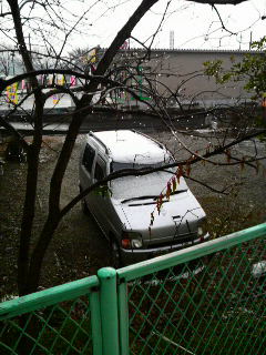 やっぱり今朝は雪積もってましたね。店長:外に出たくないのぅ・・・。と思いながらも用事があるので、軽トラに・・・GO・・・運転席も寒っ。コレぞ、自然派スモークシールド!!・・・皆さん、間違ってもこのまま発進しないように・・確実に怒られます。