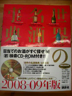 今年に入ってかなり迷っておりましたが・・・「世界の銘酒辞典」、買ってしまいました!!・・・なんと、4,725円!!(高っ)でも、お客さんからのお問い合わせや、勉強にも役立つ優れモノ。自分に投資です。・・・でも、小遣いが急ピッチで減ってます・・・今月