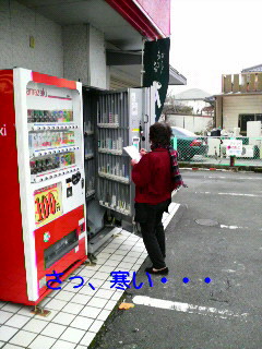 今日は朝から、雪。・・・それでも、ウチのお袋さん(専務)元気に外でタバコ自販機のチェック中!!店長:寒そう・・・ご苦労様です・・・。お袋さん:う~っ、てっ、手が~~~~冷・た・い・。何か暖かい物は・・・あっ!ゴンちゃ~~~~~~~ん!!ゴン:んっ??ニャンか聞こえたような・・・気のせいニャ!!・・・彼の場合、感動的な話には発展しないようです・・・。で、ちなみに今年の5月ぐらいからタバコの自販機に・・・コレが無いと買えなくなります!!お申込みはお早めに~。