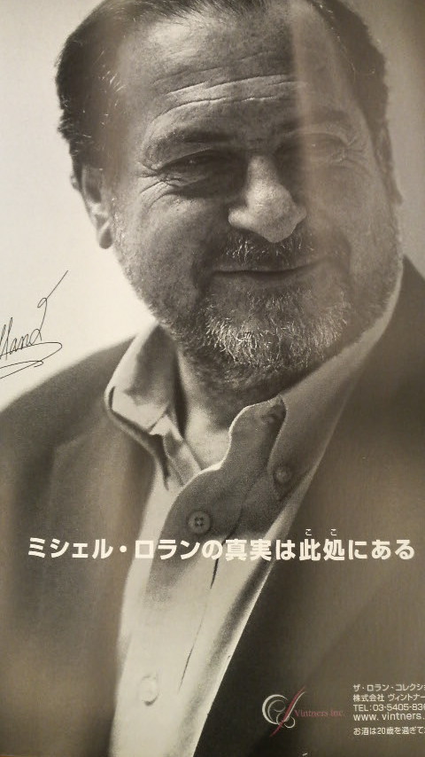 今、お気に入りの待ち受け(もちろん携帯)画面です。この人、ハリウッド男優じゃあありません。モデルさんでもありません。ワインのエノロジスト(エロじゃあないですよ。いわゆる、醸造技術コンサルタントさん)のミシェル ロランさんです!!(フランス ボルドー大学醸造学部卒)彼が関わったら、味の評判の落ちたシャトーやドメーヌ、ボデガスは必ず甦るとまで言われている人気エノロジストなのです!!・・・私もいつか、こんな感じのオッサンになれたらなぁ・・・