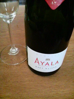 昨晩、前から飲みたかった「アヤラ ブリュット メジャー NV/白」をついに飲みましたミディアムボディでバランス良く、酸味もきつくなく非常に好印象。でもコレは黒ブドウ(ピノ ノアールやピノ ムニエ)の比率が2:1の割合で高いのですが非常にスムーズでビックリおかげで・・・ほとんど飲み干してしまいました