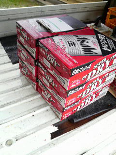 大体月一ペースで、目の不自由な村田のおばあちゃんから配達の注文をいただきます。村田のおばあちゃんは、ビールの好きな息子さんのために、(おばあちゃんはアルコールが苦手)いつも息子さん助けてもらっているからと、ビールが無くならないように気を使っていらっしゃいます。゚・*:.。. 感(*´ω`*)動.。.:*・゜いつも、御注文はスーパードライを6ケースまとめて。・・・しかし、村田のおばあちゃんは、4階(エレベーター無し)に住んでいらっしゃいます。(;≡_≡)ううう…でも、おばあちゃんのために・・・うりゃー!!でいつもがんばってます!!