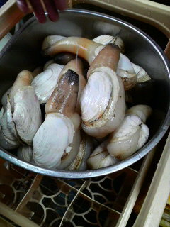 午前中の配達で「花双樹」さんへ・・・・・・私、初めて見ましたけど・・・ウ……Σ(oДolll)ノノ……ソ!!!ミル貝デケ~ッ!!(宇部沖で獲れるそうです)・・・しかも、貝に閉じこもるでも無く生きる気マンマン!!ス、スゴイデス(;;;;;;゚Д゚;;;)八☆パチパチパチ普段、美味しく食べているモノでもこうして見ると・・・地球に感謝!!(・∀・)ノですよね。