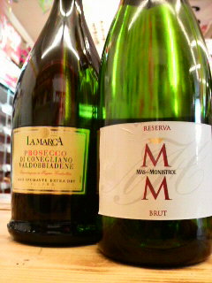 夏の休日の夕方、夕日を眺めながらスパークリングワイン・・・ん~っ、イイですねぇ。オシャレだし、この瞬間だけはすべてを忘れる・・・なんちゃって。(・∀・)・・・前置きが長くなりましたが、今月のオススメはスパークリングワイン!!左;プロセッコ ディ コネリャーノ ヴァルドッビアデーネ NV 白 イタリア ヴェネト州 やや辛口 フルーティーで少し甘さも感じるので飲みやすく、女性にピッタリです。 ワイン誌「ワインスペクテーター」においてシャンパン並みの90点を獲得!!右;カヴァ レゼルバ ブリュット NV 白 スペイン 辛口 クリアドライなすっきりとした喉越しのバランスのとれた味わいがGood。 友人の中嶋酒店さんの情報では、今月の女性誌「ノンノ」か「アンアン」に オススメスパークリングワインとして紹介されているそうです。ぜひ、一度飲んでみてくださいねぇ~。ヾ(^▽^)