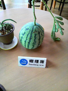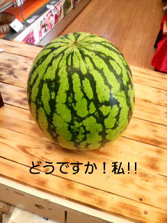 夏が(゚∀゚)キタ───♪っていう感じですね。でも、コレは小ぶりなので観賞用だそうです。そういえば、四角いスイカもあるそうで・・・ん~見てみたい。(¬_¬)・・・ナゼ、シカクニスルヒツヨウガ?