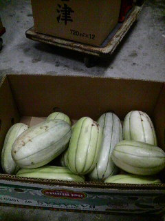 昨晩、常連さんの中村さん宅に行って「ウリ」をいただいてきました。(・∀・)コレをウチの専務さんが奈良漬にするそうです。(・∀・)結構大量にできそうです。(・∀・;)