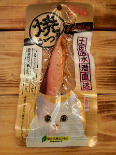 え~、昨日のブログの中で、ゴンさんだけ仲間はずれみたいでかわいそう・・・というご指摘をいただきましたので・・・・・ゴンさんにはこの「土佐清水港直送 焼かつお」を召し上がっていただこうと思います。しっとりジューシー、旨味たっぷり。新鮮素材で、猫が喜ぶおいしさ。・・・だそうです。(TーT)