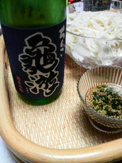 昨晩は、迷いに迷った挙句・・・晩御飯が冷し・・・・・・そうめんと思いました?(?_?)違います。(・∀・)冷し「稲庭うどん」ちゃんでした!!ヾ(・∀・)それなら!!という事でチョイスしたのが日本酒の「ちくご 亀游(きゆう)純米吟醸 生」ちゃん!!まさに、日本の夏~ッ!!っていう感じ。稲庭うどんの柔らかい喉越しと、亀游の雑味の無い柔らかな味わい がベストマッチ!!しかも、この亀游は他の日本酒とは違い赤系の果実(イチゴやチェリーっぽい)香りを放ちと~っても個性的!!それもそのはず、全国の日本酒の中でも、初めて焼酎用の黒麹を採用しているのです!!( ̄□ ̄)!・・・で、ついつい飲み過ぎ、今朝は手がむくんでおりました。(=_=;)・・・ノミスギニチュウイ!