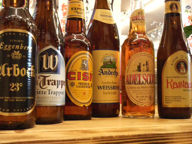 只今、入荷しました!!左から エッゲンベルガー ウアボック 23 オーストリア 濃厚でクリーミーな味わい。「ビールのコニャック」として世界的に有名です。 ラ トラッペ ホワイト オランダ 高品質なトラピストホワイトビール。とても香りの良い爽やか系です。 チスク プレミアム ラガー マルタ共和国 「ワールドビアカップ」金賞受賞ビール。上質なバランスのビールです。 アンデックス ヴァイスヘル ドイツ 酵母入りの少し濁った小麦ビール。フルーティーで飲みやすい逸品です。 アデルスコット フランス ウイスキーモルト入り。ヨーロッパでも大人気の逸品です。 カスター ベルギー 最高級ブロンドビール。最高級のホップを使用した絶妙なバランスのビールです。・・・ぜひ、一度飲んでみてねぇ~!!ビールの概念が変わっちゃいますよ~。ヾ(・▽・)・・・ワタシモ、サッソク・・・。