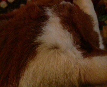 夜、ゴンさんを抱っこしてたら・・・ あら?! つむじ発見(コレ、ゴンさんの後頭部)!! 初めて見ました!!( ̄∀ ̄)