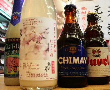 お花見シーズン真っ只中!!そんな時、ピッタリなのが「錦乃誉 やまぐち桜酵母 にごり酒」!!ほのかに桜を感じる風味の、飲みやすいにごり酒です。残り本数もあとわずか!ベルギービールも一緒にいかがですか?オシャレですよ~ん。( ̄∀ ̄)