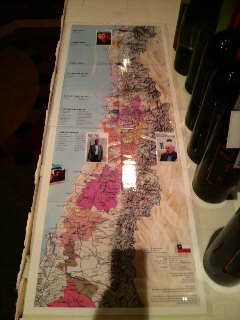 ワインの輸入元(株)稲葉さんの試飲会で福岡に出張してきました!( ̄∀ ̄)今回は、WBCの試合とも重なり複雑な気分。かなりの収穫もありながら、ワンセグでいちいち試合を確認していたため、画像を撮るのをす~~~~~っかり忘れてしまいました。(TーT)かろうじて撮れたのがこの一枚。・・・チリの地図・・・です。(T_T)しかし、地図で見ると場所による生産者の造りに関する考え方がよ~く分かって大変説得力のある地図でした。結局、日本は負けてしまい,take oneさんで非常にテンションの低いヤケ酒を飲んでいました。( ̄∀ ̄;)