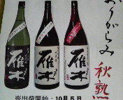 多数のお問い合わせをいただいております雁木-がんぎ- おりがらみ秋熟ですが、10月5日から順次出荷予定と発表になりました!ですので10月5日以降にご来店くださいねぇ。ヽ(*´∀`)八(*´∀`*)八(´∀`*)ノ・・・マチガエナイデネェ。