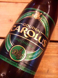 ベルギービールの「グーデン カルロス」シリーズ。その中でも、最高峰に位置する「ホップシンヨール」!なんと!4種類のホップを巧みに、贅沢にブレンド。麦芽使用率は88.8%!(||゜Д゜)ヒィィィ!(゜Д゜||)色合いは、日本のビールのようなゴールデン。4種類のホップを使っているだけあってフルーティーさ、苦み、濃さが複雑に絡み合い、非常にイイバランスの味わいを表現しています!(*^ω^)σ・・・ハッキリイッテ、スゴイ!やはり、ベルギービールの奥深さ恐るべし!ヽ(`ω´)ノモキュー!!