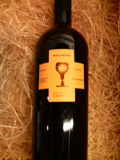 いや~っ、やっと再入荷する事ができました!(´ー`A;)アセアセ・・・というのも、品切れしてから、ワインの常連さん達から再入荷希望の一番多かった銘柄なのです!生産国:イタリア プーリア州(イタリアは地図で見ると ブーツの形をしてますが、かかとの部分)生産者:ロッカ デ モリ ブドウの作柄の良い年にしか、このワインを 造らない、大変気合いの入った生産者で、近年 ワインファンの注目を集めています。ブドウ品種:ネグロアマーロ70%・サンジョベーゼ30%畑は白亜質の粘土土壌で、水はけが非常に良く、引き締まったブドウを作るのに適しています。収穫はすべて手摘み、大きなオーク樽(樫)で発酵し、醸しは45日。フランス産の樽で2年間、瓶で1年間熟成させてます。もうお分かりの通り、これだけ熟成させるという事は、非常に濃厚な味わいとタンニン(渋み成分)を充分持っているワインなのです。飲み頃の今、少し野生的でスパイシー(香辛料のような)香り、適度より少し濃厚さを感じる凝縮感のある果実味、オーク樽のヴァニラ香(アイスのバニラのような)が結構な勢いで感じられます。いや~っ、ホントにお待たせしました!皆様、存分にお楽しみいただけるように、入荷本数は、・・・6本!!