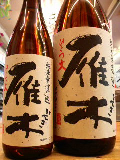 かなりの人気商品に育ってきてるのがコレ!「ひとつ火」とは、1度火入れ殺菌処理してますよ~。の意味で、してないのが生酒の部類になります。よって、常温(といっても冷暗所がベスト)保存で大丈夫なのです。使用酒米:山田錦100%精米歩合:60%(40%は削って使用しません)価格:720ml1,239円 1.8L 2,447円2000年から、この雁木(がんぎ)はスタートしています。毎年改良を重ね、進化していて、この「ひとつ火」も当初のドッシリとパンチのきいた酒質から「60%精米のお米」というポテンシャルを最大限に引き出すスタイルに、ようするに、味の乗りを充分に感じ、雑味を封じたっていう感じの味わいになっているのです!昔から飲んでいる方は「味痩せた?」と言われる人もいらっしゃいますが、店長としては「洗練されてきてるんですよ!」と答えてます。皆さんも一度体験してみてください。特にお燗でいただくと、メチャクチャ美味いですよ。ヘ( ´∀`)ノ