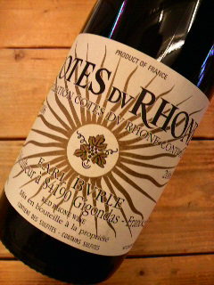 昨晩、久しぶりにローヌのワインを飲みました。原産国:フランス ローヌ地方葡萄品種:グルナッシュ(70%)、シラー(20%)、サンソー(10%)生産者:E.A.R.L ビュルルこのワインの、このヴィンテージを飲んだのは1年前。その時は、凝縮感のあるパワフルな果実味と甘味が際立っていました。「ちょっと若いなぁ・・・。」という印象で、お客さんにも積極的にオススメしてませんでした。で、昨晩の印象はというと、甘味もそれほど感じず、果実味も滑らか。非常にバランスのとれた味わいにまとまっていました。「飲み頃っちゅうのは大事じゃのぉ。」と痛感した夜でしたぁ!(uc_,uノ)