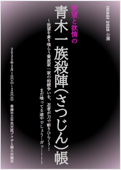 客演公演が終わりました。これね。終わったので、私のネタバレ感想。正直、今回、人様にみせるレベルで作品が完成するのかやっている自分がわからなかった。なんせ、普段の芋の華公演だと1か月前ぐらいには出来ている「通し稽古」がゲネ(本番と同じように照明音響衣装付)まで、出来なかったから。つまり、本番入れて、3回しか通せなかった作品なのよ。でも、私の妹の感想は「いままでで一番面白かった」だってさ。なんか、とっても複雑だけどそういう評価は、単純に嬉しいですねぇ。今回の私が与えられた役どころは殺人事件の「真犯人」そんな、重要な役どころをまかせるなんて、太っ腹ねーと思いつつ作品を通しでやらないから気持ちの流れがぶつ切りで「これであってんのか?」とホント不安でしたよ、私。ほら、犯人役だけあって、感情の起伏が激しいからうちの劇団の演出家のいうところのオナ〇ー演技(役に自分が陶酔しすぎて、客がドン引き)ってやつになってやしないかと・・・。難しいですよねー、その加減。まあ、どうやら今回の主催者兼作・演出家は何も言わないしあってんのかなーと恐る恐るかつ、やりたいように気持ちよく結論、どうやらあっていたらしい。「ちゃんと細部までゾッとするほど仕上げてくださり、感服しました。」と最大限評価してもらたしね。よかった、よかった。私があえて、注文つけるならホールでやりたい作品でしたねぇ。そうしたら、もっと劇的に作れただろうし会議室でやったから起こった後の席の人が観えない問題は発生しなかったと思う。後、今回私が個人的に苦労したのが「殺陣」ですねぇ。なんせ、武術の達人設定だったからさ、私の役。自分の体と、気持ちがシンクロしない。つまり、気持ちはカッコよく出来てるつもりでも実際は、トホホな感じというのか。今回、殺陣教室の生徒さん達とのコラボ作品だったのですがやっぱり、生徒とはいえ、上手ですねぇ。私、そんなにカッコよく出来ません。でもね!言わせてほしい!今回、振りを付けてくださった、殺陣の先生が「最後の殺人シーンの型は、ゾッとするほど決まってた。」だってー!えー!どうしようもなく嬉しい!まぐれだろうけど、まぐれの1回があったことが嬉しい!今回の舞台、舞台に立ったのは、なんと24人。いやー、びっくりするほどの規模。そんな人数をなんだかんだとまとめあげた今回の主催者兼作演出家は本当にすごいなと改めて思いました。おかげ様。日々の生活に感謝を。