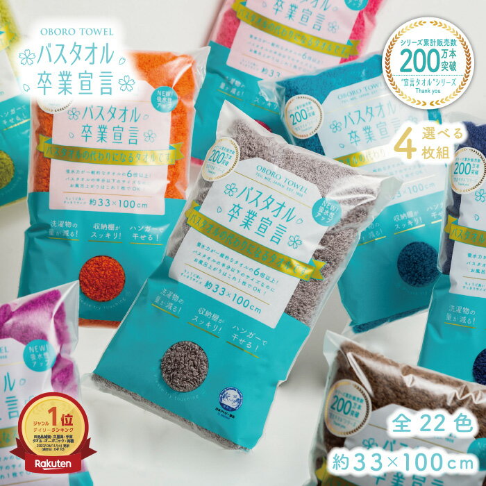 【選べる4枚セット】バスタオル卒業宣言 日本製 小さめ スリムバスタオル 厚手 コンパクト 限定色 おぼろタオル