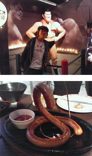 お店のなかはかなり広く、テレビがたくさんあってもちろんプロレスが流されていました。そして出てくる料理名がまたおもしろい!!コブラツイストという名の30cmのウィンナーや1・2・3サラダ~など猪木に掛けたものばかりでお店は気付けばプロレスファンでいっぱいでした(^o^;私たちは雰囲気さえ味わえれば良かったのでご飯を食べて出ていきましたが長い人たちは3時間以上余裕でプロレスに釘づけになってました!恐るべき猪木パワー(*_*)私たちは猪木パワーに圧倒されながら猪木酒場の前で記念撮影をして帰っていきました!