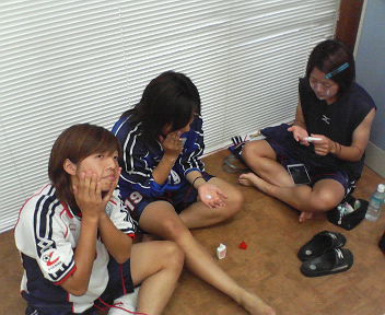 こんにちは~。夏は暑いものですが、暑いですね。ここまで暑いと外に出るのが危険になりますよね(^^;ということで(そんな理由じゃないけど…)、私たちTASAKIペルーレは北海道に合宿に行ってきました!!「合宿」とはいえ、私は北海道が初めてだったので、いろんな想像を巡らせて神戸空港を旅立ったのですが、「きっと涼しいところなんだろう」と巡らせていた私の想像は、飛行機を降りた瞬間に打ち破られました。普通に35度…。湿度はあまり感じなかったけど歩くだけでもかなりバテそうでした。新千歳空港では、お昼ご飯を食べることになり、やはり北海道といえば、海鮮丼!!ということでお店に入って海鮮丼を注文しました。来た瞬間に、彦麻呂並みの歓喜の声(海の宝石箱や~)を上げておいしくいただきました。さてさて、合宿についてです(^^:練習は北湯沢で毎日2部練みっちり試合を交えながらやっていきました。走りがメインで体がかなり痛かったですが、いつもと違う環境だったということと、そして、代表選手が一ヶ月チームを離れていたので、チームの方向性をみんなが理解する意味で少し長めだったとうことで、今回の合宿は普段なかなかできない話なども出来てすごく充実した合宿でした。合宿地は湯沢温泉ということで、温泉にも毎日入れ、風呂好きの私には最高でした(^。^)(露天風呂は北日本最大級らしく、かなり広くて開放感抜群でした!)夜になると、毎日10分くらいの花火大会があり、部屋からでも観れるんですけど、その露天風呂から観る花火はまた格別で、私には今年初めての花火大会だったので、毎日見入ってしまいました!!ホテルでの食事は、毎日、タラバ、ズワイ、毛ガニの蟹バイキングがあって、そのちうち体中から毛が生えてくるんじゃないかってくらい、毛ガニにがっついている選手もいました!!(^^:「バイキング」といっても、そのへんのおざなりの「バイキング」ではありません。さすが北海道!!しっかり身が詰まっていて、しかも美味!!ここぞとばかりに、私もかなり食べてしまいました!その他(初めての)岩盤浴にチャレンジしたり、夜にビンゴ大会があったりと、サッカー以外の時間には、ちゃんとリフレッシュできる環境がありました。(そのおかげか、サッカーもいつも以上に頑張れたと思います!!)ビンゴ大会は、100人以上いる人たちの中で行われたのですが、いきなり私にリーチがっ!!(^^)v参加者の中で一番早くに来たリーチ!!でも、いつビンゴになるのかとわくわくしながら数字を待っていたんですがなかなか来ない・・。そうしている間に周りの人がどんどんビンゴになってしまって、かなり焦りモード!!(・・;)そして物凄い数の景品がどんどんなくなっていったその時、ついに!しゅ~りょ~!!二枚紙をもっていた私は7リーチになりながらビンゴ!と叫べずに終わってしまいました(T_T)リーチの時には誰よりも大声でリーチ!リーチ!リーチ!と連呼していたので終わった瞬間はかなり恥ずかしく、「こんな時に笑いの神様いらないし!(`´)」とブツブツ言いながら、すごすごと露天風呂へ向かったのでした…最終日には観光も出来たのでそれは次号で(^^)v