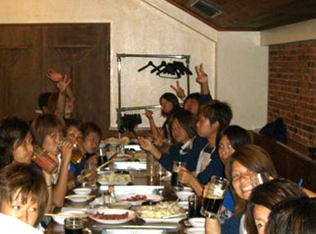 こんにちは!今回も北海道合宿について書きたいと思います!北海道で、私は生まれて初めてジンギスカンを食べました。北湯沢から札幌に移動した夜にみんなで食べに行ったのですが、かなり盛り上がり、すごく楽しい夕食でした。「私は」ですが、実はジンギスカンよりウインナーの方が美味しかった(^o^;あの独特のくせにやられてしまいました。次の日は、飛行機までに時間があったので、大倉山や小樽の北一ガラスなどをみにいってお土産を買ったりしながら北海道を満喫しました!!大倉山のジャンプ台は観てるだけでもかなり恐いのに練習をしている人たちが次々に飛んでいて、思わずみんなで拍手喝采!!高所恐怖症の私には出来ないなぁ~と見入ってしまいました!!(*_*)小樽では、北一ガラスに行こうと地図を開いていた時に、それとは逆の方向にドラマで使われるという有名な崖があるらしく、タクシー運転手に呼び止められ『船越英一郎がよく来る』とか訳のわからぬ理由で、あやうくそっちの崖に連れていかれそうになったなんてこともありました!!そそくさと逃げましたが(^^ゞ今回の北海道合宿は、沢山練習をして、いろんな所をみて、美味しいものを食べて、とても良い合宿でした。北海道で食べる物は何でも美味しく、最後に食べたとうもろこしもやっぱり美味しかったです!(磯さんのおごりだったからかしらっ(^^)v)でも…神戸に帰ったら二部練が待ってるかと思うと、ちょっぴり憂欝な気持ちで、新千歳空港を後にしたのでした~。m(__)m