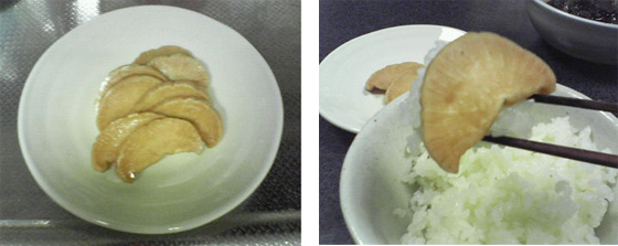 こんにちは。中田選手に続き水泳のイアンソープ選手までいきなり引退してしまいましたね(__)ソープ選手はアテネオリンピックで実物を選手村で見ましたが、他の選手達と一緒にいたけど一人オーラが違いすぐに気付きました!でも普通にマクドナルドで注文していました(^.^)そんなソープ選手の引退はとても残念ですが、次の水泳のヒーローは誰になるか、それは楽しみです!さてこの写真は何かわかりますか??前にも話したと思うんですが、磯さんの実家に行くとおばさんの漬けたお漬物が出てきます。どれも美味しいんですが、特に私が好きなのは、この大根のたまり漬け(!?)なんです!!これはそのままでも美味しいし、ご飯がかなり進む君(^_^)vもう食べ始めたら止まらず、どんどこ食べちゃいます!!この写真を見たら勝手に口が開きませんか~?(^O^)私があまりにも言うもで、この間関東で試合のときおばさんがわざわざ漬けて持ってきてくれました。今はそれを大事に大事に食べて幸せを感じているところです(^v^)磯さんのおばさんは料理が上手で栗の甘露煮なんかも持ってきてくれてみんなで食べてたら一気に無くなってました\(^o^)/おばちゃんいつもありがとう~(^.^)さて選手権の日程&トーナメントが発表され、なかなかハードなスケジュールでした。私たちも何年かぶりに、広島で試合があります。選手権までの間にチームの完成度を上げてリーグで出来なかった優勝を出来るように頑張りますのでこれからも暖かい応援をよろしくお願いしますm(__)m