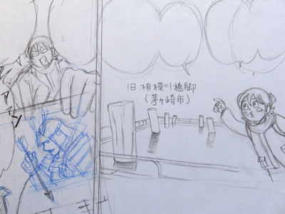 お久しぶりですこんにちは。毛利楓です。しばらく原稿に没頭していてブログ世界から消えていましたが、戻って来ました。2月16日、コミティア151が無事終わりました。我々のスペースまでおいでくださった皆様に感謝します。前回もそうだったけど、今回も参加者の皆さんと交流できて、対面型イベントの良さを感じられました。数年前はこうはいかなかったんだよね。ネットで作品を見ていてくださったという方、本やグッズをくださった方、ありがとうございました。うちの榛谷(四郎重朝)殿を気に入ってくださった方も幸あれ!いろいろ困難な折ではあるのですが、元気をいただけました。今後も図々しく描いて行けそうです。さて、イベント前に2回しか更新していなかったブログですが。今回からいつものように事後報告して行きます。いつもより回数少なめで終了する予定ですのでもう少しだけ、お付き合いよろしくお願いします。ではでは、再開!↓下描きをのんびりやっています。年末年始にインフルエンザでごたごたしちまったせいでいつもより時間がないので、かなり急いだ方がいいのだが急ぎ方がよく分からないからまあいいか!背景はトレースを多用することにしました。右のコマは旧相模川橋脚の写真を写し描き。去年の春に撮影して来た写真です。解説してる毛利楓は藤子キャラ調で描きました。この漫画は川崎市のイベントに参加した話なのですが別に市内にあるあの有名ミュージアムに寄せたわけではなく子供の頃よく読んだ藤子キャラたちが解説してる学習漫画を思い出し、この芸風でやってみました。ちなみにこの顔は『忍者ハットリくん』のシンちゃん風です。シンちゃん(シンゾウ)はハットリくんの弟ね。ペン入れの時、ほっぺの形が違うと気付いて後ほどシンちゃんに寄せました。左のコマの絵は全て自力で描きました。「SHIGENARI」の冊子を見て模写したものです。矢を持っているヒゲのダンディー武者はこのイベントにおける稲毛三郎重成さんだよね?日常の話もぶち込みます。親戚から大量の柑橘が届きました。品種を示すオリジナル付箋付き!見たことのない種類のものばかりです。うわーーい!しばらく果物買わなくていいじゃん。ありがとう!!親戚のおじさん。でもちょっと待って。下の方にとてつもなく大きい物体が見えないか?箱の底の方にあったのがこちらです。べらぼうにでけえな!!比較のためにポンカンを載せておきました。やっぱりでけえーーーーー!!!!!「食べてもいいものなのか?」「風呂に入れるしかないのか?」などととまどいながらネットで検索したら、とてもおいしい品種であることが判明。風呂じゃなくて、胃袋に入れよう。下描きに戻ります。このコマの背景もトレースです。お堂の後ろが森なのでペン入れの時の描き込みがつらそう。あと、このお堂の引き戸。細かい横線いっぱい引かなくちゃいけないタイプの戸だよ。インクべっちゃりになったら修正が大変そうだなあ。はあ……(ため息ついてますが、まあまあ元気です)ペコちゃん風の毛利楓です。ヲタク発言をしているシーンなのでかわいいフリでもしてないと場が持たないなどと思い、ペコちゃん絵柄で描くことにしました。ペコちゃんにチャレンジするのはおそらく初めてです。描いてみたら、何だか多くを学んだ気分になりました。子供の頃からずっと見て来たキャラだったけど子供の頃には気付けなかったことがたくさんあったのです。目のカーブとか、あの口元の配置とかにかわいさの秘密が詰まっている気がしましたよ?イイ歳になったけど、いつでも新しい発見ってあるのう。次回、ペン入れとトーン!挑め!!仏教建築!!!