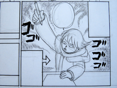 トーンを入れる前、大掛かりな主線のお直しをすることがあります。今回はこのコマです。画像はエロスさんの大きさを直しているところ。なんだかエロスさんがでかいのである。エロスさんはヤギ化しているはずなのに、牛化しているように感じる。ヤギキャラに戻すため、エロスさんの部分を切り取ってちょっとだけ小さくしました。直してトーンを入れて、こんな感じになりました。まだちょっと変なんだけど、これくらいにして先に進むこととするよ。イベント2日前の夜に原稿のプリントアウトをしました。今回は校正の段階で大がかりなミスはなかったと思ったので、一気にプリントアウトしたのですが断ち切り線で原稿の周囲を切った後、最終チェックのつもりで原稿を見直していたらケアレスミスが無尽蔵に出て来ました。自分に絶望した。この写真に写っているのはトーンのはみ出し(上)、トーンの入れ忘れ(左下)台詞の入力漏れ(右下)です。出来る限り直したけど、もう直せない段階になってさらなるミスを見付けてしまいました。普段なら校正の段階で発見できるようなミスなんだけどなあ。インフルエンザ騒動で原稿にかけられる時間が減り、校正もゆっくり出来なかったのだよ。もうさ……インフルエンザ許さん!!この冬の創作活動ではペーパーのカットがいつまで経っても描けませんでした。普段から描きためておけばよかったんだけど、例のインフルエンザ騒ぎで年末年始の予定が大幅に狂い、睡眠時間も徐々に削って描くような状態になってしまいカットを描く余裕を作り出すことが出来なかったのです。漫画の原稿が終わる頃になってようやくペーパーの下描きをしました。もうね、無理やり時間をひねり出して一気に描いた。「この時間内で描けなかったら詰む!」くらいのプレッシャーで描いた。今回の人物は榛谷殿(稲毛殿の弟)です。ポーズはインターネッツで見付けた写真を参考にしました。小顔ポーズの一種ですかね?手の角度とかが面白いなと思って描いてみたくなったのです。ペン入れをしています。下ろしたばかりのハードGペンで主な部分を描き、顔のパーツはつぶれ始めた丸ペンで描きました。どちらもゼブラです。新しいハードGペンがまだ硬くて狙った質の線が出ませんでした。しばらく使ったら良い感じになると思うんだけど。ハードGペン、ペン先のカリカリ感が長く続いて取り替えなくても何枚も描き続けられるから大好きなのだよ。これから長ーーーく使うぞう!次回、慟哭の最終回!!生きろ!!パンデミック後の世界を!