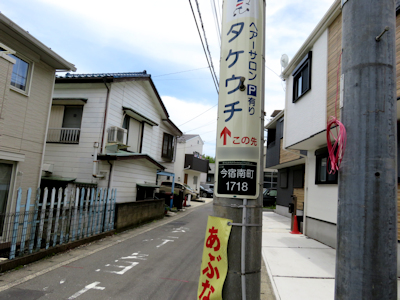 住宅地の中の細道に「今宿南町1718」とある電柱を発見。