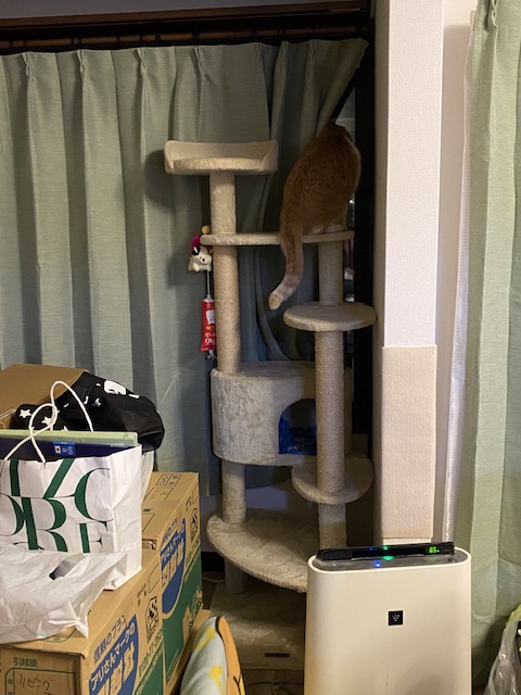部屋中探検、景色が変わって不思議そうなにゃんこ
