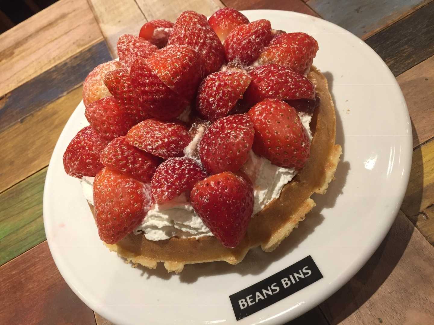 2020年の旅行は、国内・海外を通して1回だけ。昨年のちょうど今頃の1月中旬、3泊4日のソウル旅ここ数年、1年に3~4回定期訪問している韓国。主にソウルだが、釜山に行くこともある。お買物・グルメ・エステとお楽しみがいっぱいで、国内旅行感覚で気軽に行けてしまうのが魅力だ。サラリーマン時代は、金曜夜から日曜までの2泊3日や土日に1泊2日で行ったことも。冬季の韓国のお楽しみは・・・12月から5月初旬までがシーズンのいちご。そのいちごをたっぷり味わえる「BEANS BINS COFFEE」の『いちごワッフル』カフェ天国のソウル。BEANS BINS COFFEE 以外にも「いちごワッフル」を提供するカフェは数多あり、色々食べ比べをしたみたが、BEANS BINS COFFEE が一番美味しいという結論に達した。アメリカーノと一緒にいただいた。真上から見ると、いちごで埋め尽くされてワッフル生地がわずかしか見えないほど、たっぷりのいちご。日本のスーパーで売られているいちご1パック分ぐらいの量だ。韓国のいちごは、日本のかたくて酸味の強いものとは異なり、柔らかくて水分が多く酸味はそれほど強くない。そのため、これだけの量でも一人で完食できてしまう。BEANS BINS COFFEE のいちごワッフルが特に美味しいと感じるのは、いちごの美味しさに加えてワッフル生地がサクサクに焼き上がっていること。生クリームといちごのソースとも相性が良く、ミックスしていただくと、たまらなく美味しいズームしてみましょういちごのみずみずしさが伝わるでしょうか?写真を見ていると、今すぐソウルに飛んで行って食べたくなる。しかし、今はそれができない・・・1年前は、1年後にコロナで海外渡航できなくなっているとは・・・夢にも思わなかった。