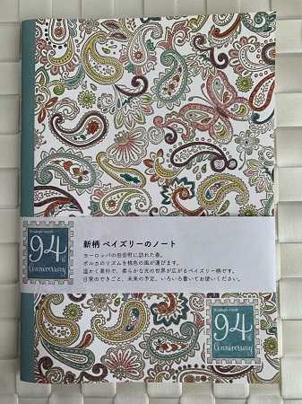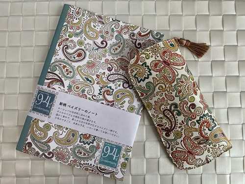 2万円以上購入でいただけるノベルティのペイズリー柄のノート。
