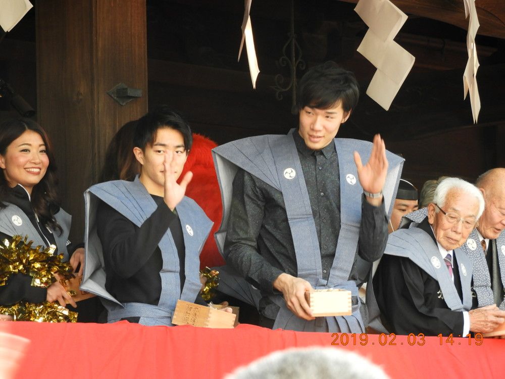 府中にある大國魂神社の節分祭に行って来ました。今年は、アルバルク東京の齋藤 拓実選手、馬場 雄大選手等が来るという事で行って来ました。神社に到着した時には、結構な人が境内にいて、豆まきの時を待っていました。参拝を済ませて待ち行列の中に並びました。5列目くらいに入れたのですが、豆はキャッチできませんでした。残念。。。なかなか難しいものですね。(笑)