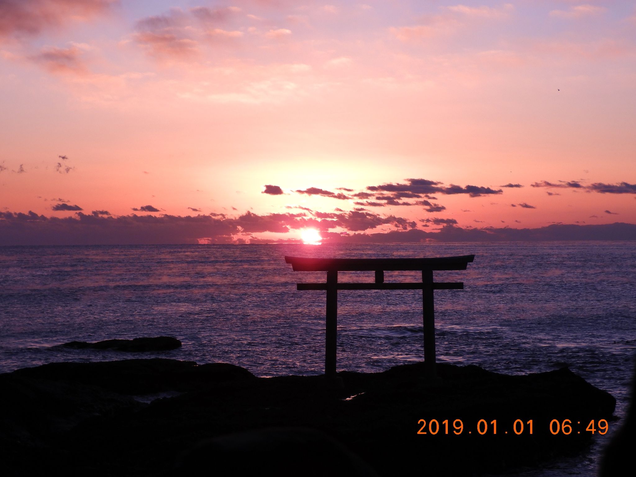 茨城県の大洗海岸の所まで初日の出を見に行って来ました。もう足がかじかむ程寒かったけど、晴れて綺麗な日の出が見れました。ちょっと水平線の雲が残念でしたけど。初日の出の前に、大洗磯前神社に初詣に行きました。氷点下の中のお参りで寒かった~。