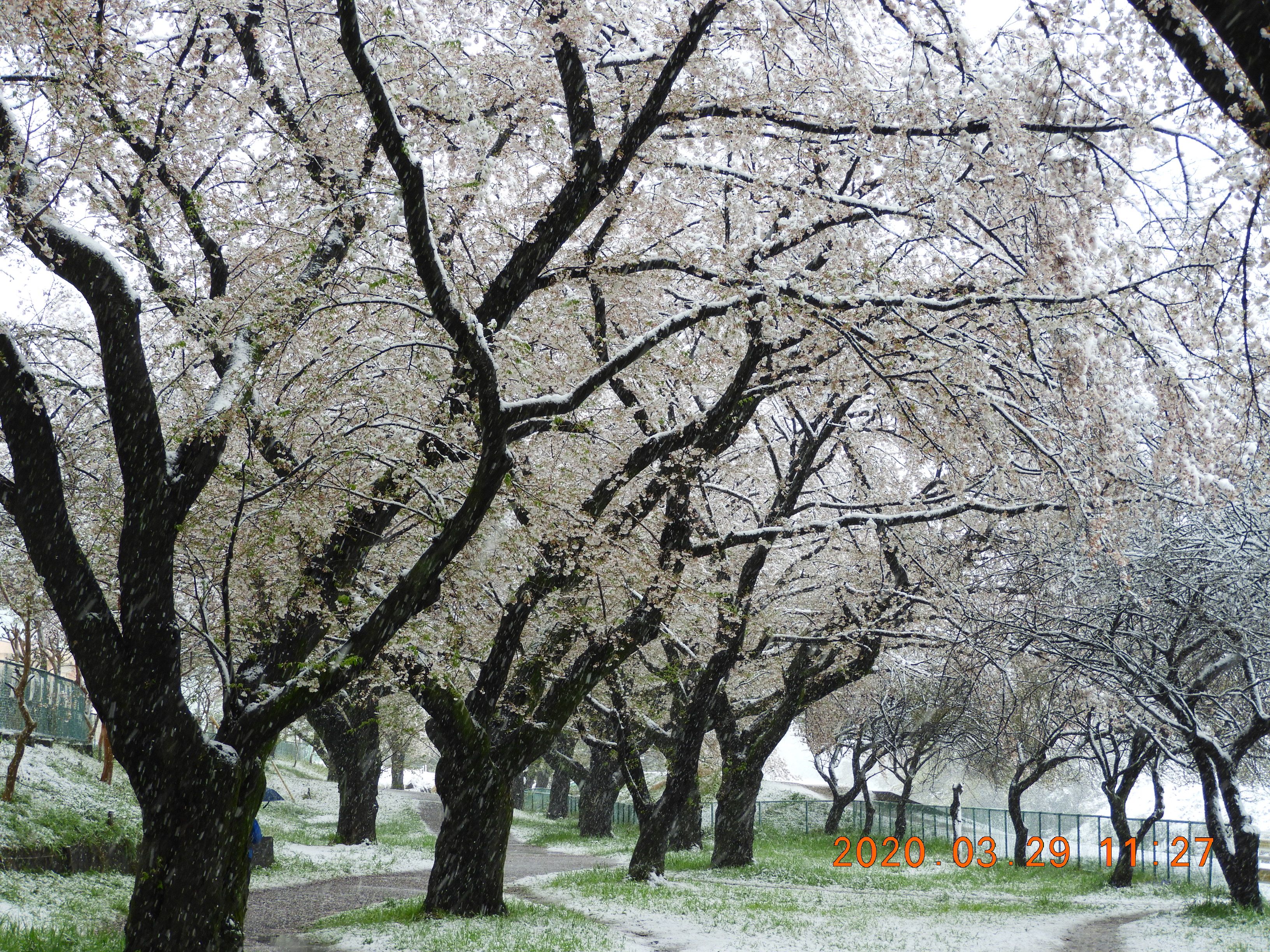 桜が咲いてからまさかの雪。この時期に結構積もってます。桜と雪と珍しいので写真を撮りに散歩してきました。寒かったけど綺麗な景色が見れました。こんな天気なので人も殆どいませんでした。桜と雪が珍しくて見に来てる人がチラホラしか居ませんでした。桜と雪