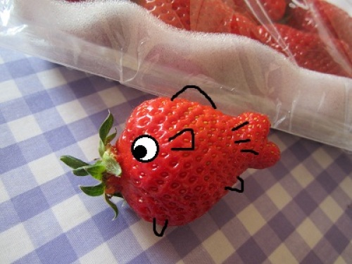 相変わらず、苺がマイブームな私。昨日も「あまおう」を食べようと・・・・(○Д○;)うひゃ!?なにこれ!!!!魚に見える~!!!(笑)思わず写真に撮って、PCでお絵かきしちゃいました(^m^*)ぷぷー!