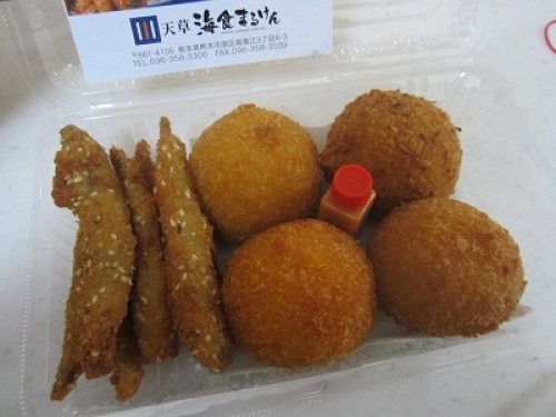 今日4月2日まで阪神百貨店 うめだ本店で開催中の阪神の福岡・熊本・鹿児島物産展 ・・に、行ってきました(^0^)いろいろ試食して安納芋も美味しかったんだけど・・・・買ったのは、これ!!!熊本市・天草海食まるけんのウニコロッケ&きびなご胡麻フライウニコロッケは、別添えでウニソース付き。4個のうち1個はライスコロッケ、1個はクリームコロッケにウニソース、あと2個はポテトコロッケにウニソース。どれも美味しかったー!(´▽`*)うに~!!!!!!あー・・・開催前半に行ってたら絶対にリピしてたなあ(笑)と!思ったら!きゃー!楽天市場にお店あったー!!!【新発売】生うにを贅沢に使ったおにぎりのコロッケです!<熊本天草>うにぎりコロッケ5個入 ...買おうかな・・・(^m^*)うふふふふ