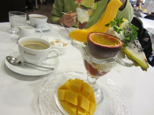 阪神百貨店の紳士服売り場の隅にある・・大阪寿司の「すし萬」さんがやってる甘味屋さん。の、あんみつ・・・に、ハマり気味♪かき氷にはまだ早いし、ぜんざいはもう暑い・・・。そんな今にぴったり(^^)
