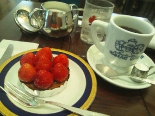 そういう時は自宅じゃなくて、セルフじゃなくて静かでゆったりした喫茶店!大好きな「にしむら珈琲」でホットコーヒーと苺タルト!ちょっとすっきり♪