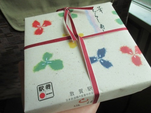 青春18きっぷをつかってダンナサマと福井方面におでかけしてきました。敦賀駅で、ちょうどちょっと早めのお昼ごはんな時間。 駅弁をGETしましたー! 私は、これ♪ 「華ちらし寿し」 シンプルに美味しい~(≧ω≦*) あと・・・・ちらし寿司だけじゃ少ないかも・・・っていうのと とってもおいしそうだったので これも追加で。照焼き鯖のお寿司、1切れ。 結局、ちらし寿司を食べたあと、ダンナサマと仲良く半分っこしちゃった(笑) 身がふんわりしてて美味しかった~♪ ダンナサマは、これ♪ 「敦賀赤レンガ倉庫リニューアル記念弁当」 昭和レトロな水筒付き(ただし中身は空っぽ) トラウトサーモンのお寿司 そういえば、来週から!阪神百貨店で毎年恒例の駅弁大会が始まる~!!!!楽しみだなあ(´∀`*)駅弁大好きー!!!!
