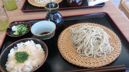 赤松パーキングエリアの上り線にある、手打ち蕎麦のお店。おいしそうなんだけど、上り線のPAに立ち寄る時間はいつも食事の時間じゃない。どっちかっていうと、下り線のほうを通るときのほうがランチタイム。で・・・・下り線にも、そのお蕎麦があるんだけど「限定数」と書かれてるだけで、入荷時間もわからず・・・とにかく「いつ行っても売り切れ」だったんですがとある土曜日、11時半くらいに行ったら!まだありました!というわけで注文!とろろそば付き1080円!PAで、こんな本格的なお蕎麦が食べられるなんて~!(≧∀≦*)ちなみに、とろろが嫌いなダンナサマは・・・蕎麦だけ。に、赤松コロッケも食べてました(笑)