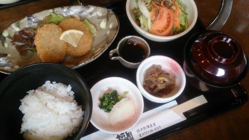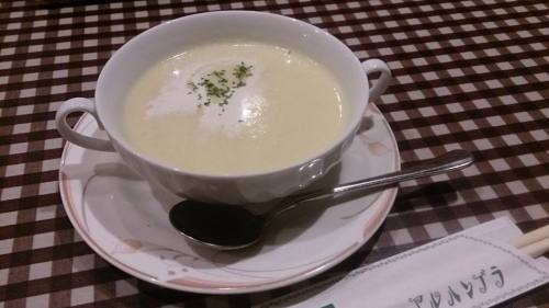 寒~い日の夜ごはん。駐車場があって、牡蠣フライがあるお店・・・・というわけでダンナサマが「行こう!」と提案してきたのは塚口にある「洋食家アルハンブラ」http://tabelog.com/hyogo/A2803/A280304/28006898/御夫婦でやってる、町の小さな洋食屋さん♪という感じでご近所の常連っぽいマダムがたくさん来てましたー☆まずは、優しい味のコーンポタージュが出てきてダンナサマは、牡蠣フライ定食♪めちゃ大きい牡蠣がゴロンゴロン乗ってました!私は、牡蠣フライ&ハンバーグ。ハンバーグはナツメグがしっかり効いたフワフワ系。自家製タルタルも美味しかったし、添えてあるサラダが、ポテト&マカロニ&林檎・・・で、これまた美味しかったー!