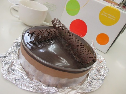 月1のチョコレートレッスン♪7月はアントルメショコラでしたー。本来、ゼラチンを入れないレシピなんですが真夏の今・・・持ち帰るまでに溶けそう!っていうことで急きょ、ゼラチンを加えましたが・・・・帰宅後すぐ、まだちょっと冷え固まりきってない状態でお友達へのとりわけのために切ったら・・・うん・・・上のグラサージュが、ちょっと流れ出そうな感じに!でも、口どけがよくて、濃厚で・・・とーっても美味しかったです(*^▽^*)