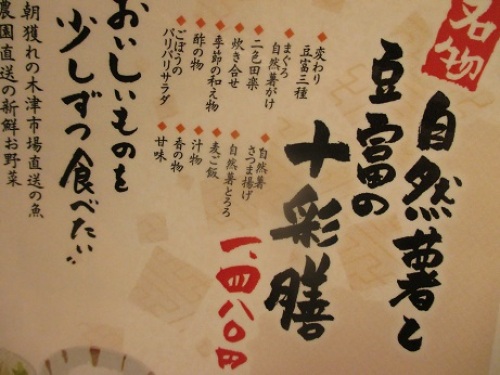 お友達とNU茶屋町でランチ♪ 地下にある近江野菜が美味しいお店に行ったんだけど すでに行列ができてて、時間も無かったので諦め・・・・ 8階へ・・・・で!自然薯のお店に。 「大山山麓自然薯 治之助」 http://tabelog.com/osaka/A2701/A270101/27004370/◇自然薯と豆富の十彩膳◇をいただきましたー! いろんなものを少しずつ♪ お豆腐と自然薯・・・だからヘルシー!味も女子好みだったよー! こういう罪悪感のないランチ、いいね!(≧m≦*)